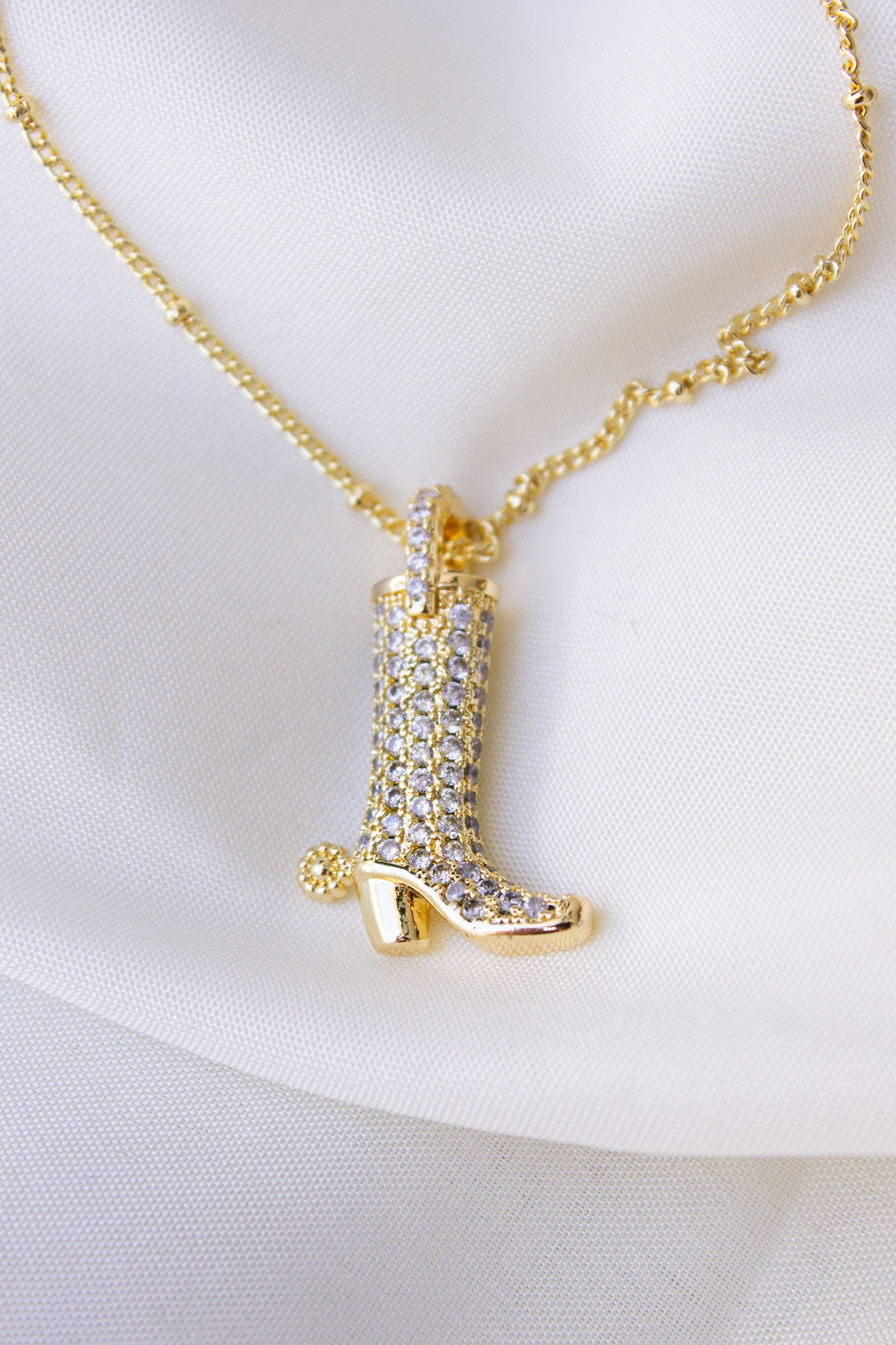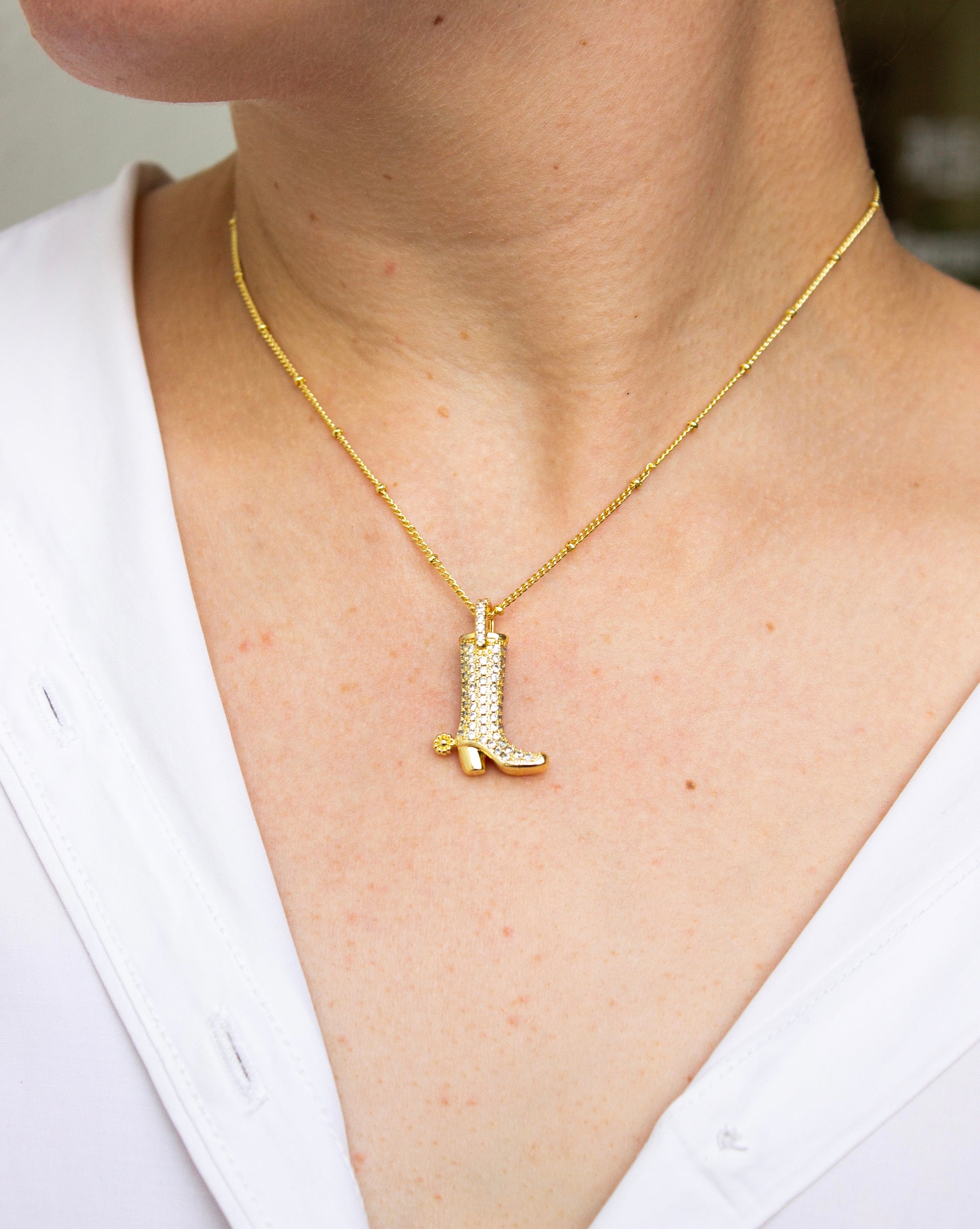 Medida: 46 cm de largo + 5.5 cm de extensión. Material: baño de oro 18kt, zirconias.